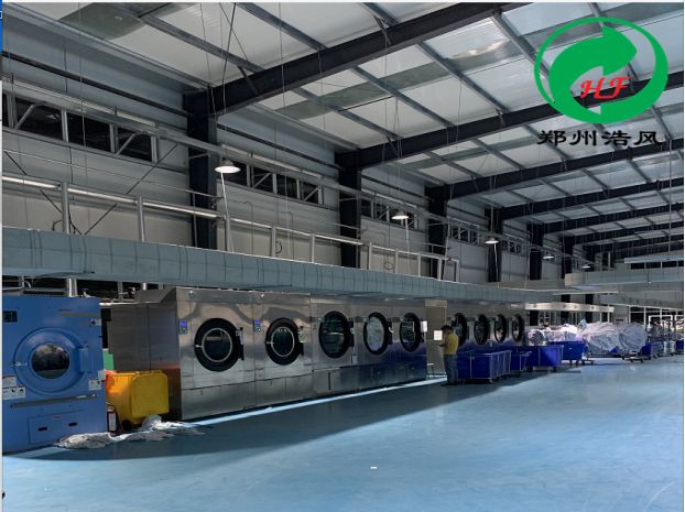 我們正常降溫把水洗廠分成若干個區(qū)域:分揀區(qū)、洗滌后擺放倉儲區(qū),這些區(qū)域人員作業(yè)不固定流動性大,采用浩風(fēng)冷風(fēng)機(jī)20臺直接吹風(fēng)就可以給這部分車間整體降溫;而熨燙區(qū)、平燙區(qū),烘干區(qū)、折疊整理區(qū)、水洗區(qū)采用前面整體式的吹風(fēng)效果就不好了,這部分區(qū)域我們都是采用安裝3.0千瓦大功率冷風(fēng)機(jī)鋪設(shè)管道進(jìn)行送風(fēng)到員工的工作崗位上進(jìn)行降溫。這部分區(qū)域作業(yè)人員工位相對固定,利用局部降溫可以避免冷氣的鋪張浪費(fèi)。局部崗位降溫的優(yōu)勢就是:有針對性,大大減少成本,又能給工人提供舒適的崗位環(huán)境。