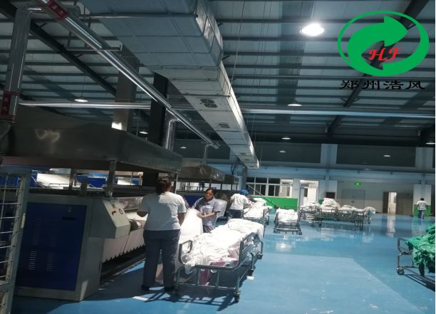 鄭州凱爾思醫(yī)院管理服務(wù)有限公司位于新鄭市郭店鎮(zhèn)天辰路1號,是以向醫(yī)院提供醫(yī)用紡織品租賃、洗滌化一體化的專業(yè)集團(tuán)服務(wù)有限公司,為河南省醫(yī)用織物洗滌質(zhì)量標(biāo)準(zhǔn)試驗(yàn)基地。洗滌廠車間環(huán)境高溫高濕,設(shè)備多,夏季高溫期就是桑拿日,根據(jù)到貴司車間實(shí)地勘察,再與該車間領(lǐng)導(dǎo)溝通,我司采取了整體通風(fēng)降溫及區(qū)域崗位降溫相結(jié)合的方案對車間進(jìn)行降溫,整體車間采用負(fù)壓風(fēng)機(jī)進(jìn)行空氣置換。完工速度快,運(yùn)行后所覆蓋的降溫區(qū)域溫度都控制在28度正負(fù)2度,最終很好的完成了甲方需要的效果,得到了甲方及甲方員工的一致認(rèn)可。