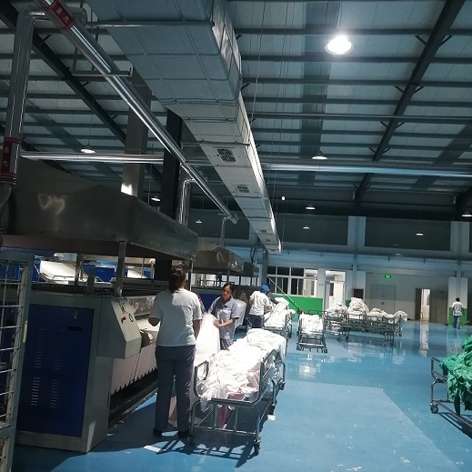 鄭州凱爾斯醫(yī)院管理服務(wù)有限公司是以向醫(yī)院提供醫(yī)用紡織品租賃、洗滌一體化的專業(yè)集團服務(wù)公司,該企業(yè)為國內(nèi)一流的醫(yī)院管理服務(wù)龍頭企業(yè),河南省醫(yī)用織物洗滌質(zhì)量標準實驗基地。該企業(yè)車間有大、中、小型全自動洗衣機、烘干機、燙平機等機種近百臺,車間溫度高達40度,員工在車間里工作非常不舒服,工作效率降低,積極性降低。該司最終找鄭州浩風(fēng)環(huán)保設(shè)備有限公司為該車間進行通風(fēng)降溫,改善車間環(huán)境。