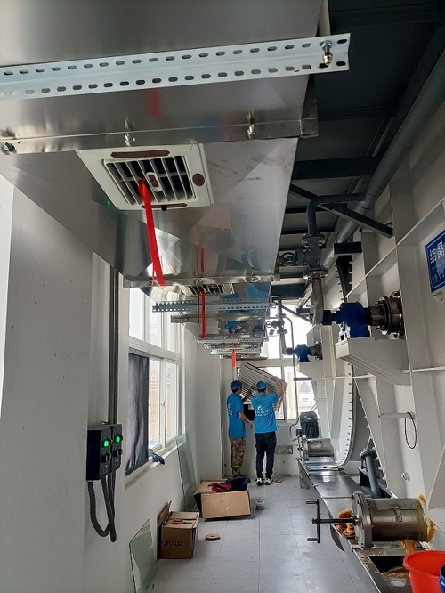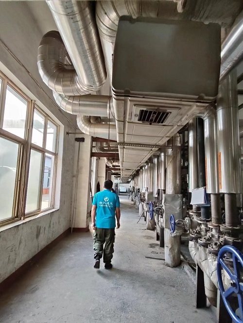 我公司采用的車間崗位降溫方法就是把冷風(fēng)直接吹到工人身上,車間里面的布局類似于中央空調(diào),車間里面有主管道有分管道,每個工位都是一個分支,都有一個排風(fēng)口。